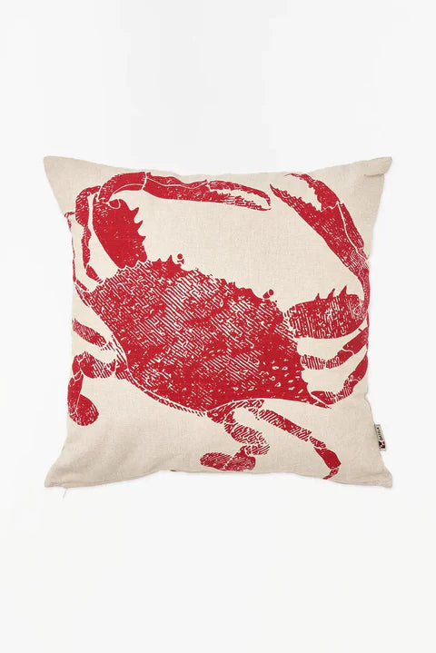 Ce coussin élégant est doté d'un motif crabe rouge sur un fond blanc, créant une pièce qui évoque l'essence marine.